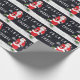 El divertido envoltorio de regalos de Navidades que incluye a Santa con un diseño de palos lax y una línea de cruces fa-la-la.