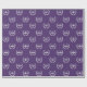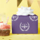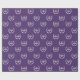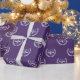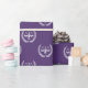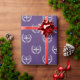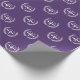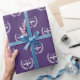 Envoltura creativa de regalos de abogados con escalas alegres de patrón de justicia en un fondo morado.