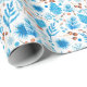 Cuto papel de envolver de regalo moderno! El diseño incluye foliage azul congelado, copos de nieve y follaje de invierno.