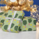 Envoltura de regalo de vacaciones con temática de baloncesto con remo rojo y verde y pelotas amarillas de adorno navideño.