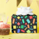 Este rollo geométrico de papel envolvente presenta confeti arcoiris sobre un fondo negro. Embalaje perfecto para cumpleaños y celebraciones.
