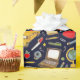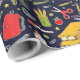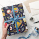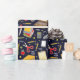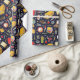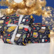 Envoltura de regalo creativa para maestro o estudiante o decoración de fiesta escolar con suministros de salón de clase y patrón de autobús escolar.