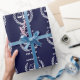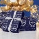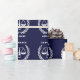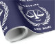 Envoltura de regalo creativa para graduación de facultad de derecho y decoración para fiesta de graduación con divertido patrón de balanzas de la justicia sobre fondo azul marino. Para personalizar, edite el texto para agregar el nombre del abogado.
