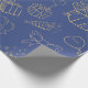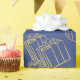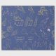 Estas modernas sábanas de envoltura cuentan con adornos clásicos de regalo y de fiesta de cumpleaños, colores dorados y azules para feliz cumpleaños.