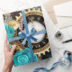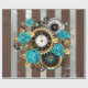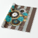 Papel De Regalo Reloj de vapor y Rosas turquesa a rayas