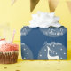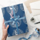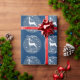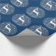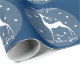 Este papel de envoltura de bonito presenta un patrón de siluetas de ciervos blancos y caída de nieve sobre un fondo de dos tonos azules. Haga clic en Personalizar esta plantilla para personalizar fácilmente este papel de ajuste con su propio saludo, nombres u otro texto.