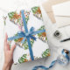 Rindeo en la nieve con árboles y adornos colgados de sus cuernos