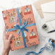 Este divertido papel de envoltura de Navidades presenta un estilo retro vintage con dibujos personalizados de un reno con una bufanda de rayas rojas, una chimenea con medias y una torre de regalos navideños. El texto de Silly incluye la palabra "Feliz Navidad". Qué lindo para las vacaciones.
