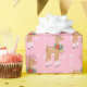 Rudolph El reno de la nariz roja brilla a través de una escena blanca y nevada. Los copos de nieve caen por todas partes mientras los cánticos de Rudolph brillan contra un suave fondo rosado. Ilustracion original de los artistas Noël Snow.