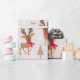Papel envuelto con un lindo reno con bufandas y luces de Navidad.