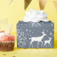 Un bello papel de envolver de vacaciones en renos y copos de nieve de color gris y blanco