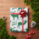 Para los amantes de la nieve, este diseño de papel de envolvimiento de vacaciones presenta un patrón de reno con vibrantes copos de nieve verdes y azules y las palabras "Let it Snow", repartidas por todos lados. El fondo aquí es un gris plateado pálido.