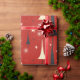 Este diseño rojo dominante de envoltura de regalo presenta un ilustracion abstracto de árboles y estrellas navideñas.