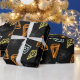 Pequeños triángulos abstractos de ilustracion de mano moderna en amarillo gris y naranja sobre fondo negro. Patrón abstracto de Guay halloween