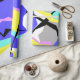 Felices Fiestas Elegante Yellow Gris Blanco Púrpura Turquesa Resumen Papel de envolvimiento del patrón de arte para añadir a tu colección de celebraciones de casa / negocios / oficina. Un regalo fresco / idea de regalo para todos los que aman el diseño personalizado único, uno de un tipo de artículos, regalos personalizados, colores de vibraciones positivas, diversión, alegría, temporada festiva, fiestas, decoraciones, planeta, vibraciones orgánicas, etc. Año Nuevo, Navidades.
