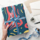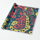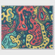Esta obra de arte presenta un patrón abstracto vibrante y enérgico lleno de formas fluidas, orgánicas y colores audaces y contrastantes. La composición está dominada por formas giratorias en rojo, amarillo, verde azulado y azul oscuro, lo que crea una sensación de movimiento y dinamismo. Los detalles intrincados y las líneas variadas le dan a la pieza una cualidad divertida, casi hipnótica, que recuerda a los años 60 y 70 el arte psicodélico. El diseño es caótico y armonioso, y atrae al espectador a un mundo complejo e inmerso.