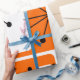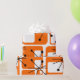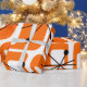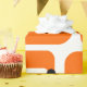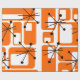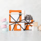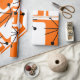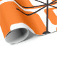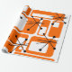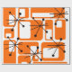 Este papel de envoltura retro está cubierto con cuadrados naranjas modernos de mediados del siglo XX y starburst negras.