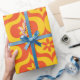 Papel De Regalo Retro Flowers on Yellow and Red Ogee Pattern