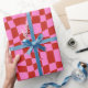 Papel De Regalo retro groovy lindo rosa y rojo ondulado a cuadros