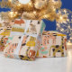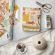 Este diseño de estilo retro presenta bonitos ilustraciones de una variedad de animales de la selva, pájaros, leones, jirafas, cebra, elefantes, cocodrilos, serpientes, monos y más en tonos azul acuático, amarillo dorado, naranja, marrón y melocotón, con un fondo de color crema. Este papel de envoltura es perfecto para envolver regalos para niños pequeños.