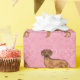 El original ilustracion personalizado de Destei de un lindo perro de raza Ridgeback Rhodesiano con un color de fondo rosado con un patrón de corazones de diferentes tamaños.