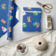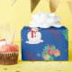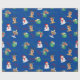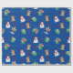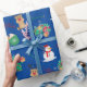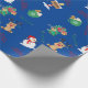 Papel De Regalo Rincón de reno azul mate, muñeco de nieve y presen