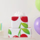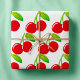 Un par de cerezas rojas brillantes y maduras. Este diseño se ve realmente efectivo en este papel de ajuste