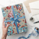 Ilustraciones de lindos robots vintage en tonos rojos y azules, junto con algunas nueces coordinadas, se sitúan sobre un fondo de color marrón en este papel de envoltura con estampado. Añade un toque retro de ciencia ficción a cualquier regalo.
