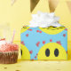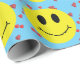 Las caras clásicas sonrientes con los corazones rojos en azul resaltan este divertido ajuste de regalo.