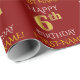 Este diseño de papel envolvente presenta un mensaje como "FELIZ SEIS CUMPLEAÑOS", con el "6º" en apariencia de oro falso/imitación. También tiene un nombre de personalizable y un fondo de color rojo. Tal vez podría ser usado cuando se envuelven regalos para el sexto cumpleaños de alguien. [~Z0000131]