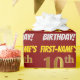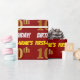 Este diseño de papel envolvente incluye un mensaje como "¡DIEZ CUMPLEAÑOS DE PRIMER NOMBRE!", con el "décimo" que tiene un aspecto de color falso/imitación de oro, y con el nombre y "CUMPLEAÑOS" en un divertido y audaz tipo de letra. El nombre se puede personalizar y el fondo es de color rojo. El envolvimiento de papel como este podría ser usado cuando se le dan regalos de cumpleaños a alguien en celebración de su décimo cumpleaños. [~Z0000204]