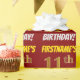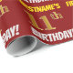 Este diseño de papel envolvente incluye un mensaje como "¡11º CUMPLEAÑOS DE FIRSTNAME!", en el que el "11º" tiene un aspecto de color falso/imitación de color dorado, y con el nombre y el "CUMPLEAÑOS" en un tipo de letra divertido y audaz. El nombre es personalizable y el fondo es rojo. El envolvimiento de papel como este podría ser usado cuando se le dan regalos de cumpleaños a alguien en celebración de su undécimo cumpleaños. [~Z0000204]