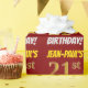 Este diseño de papel envolvente incluye un mensaje como "¡21º CUMPLEAÑOS DE JEAN-PAUL!", en el que el "21º" tiene un aspecto de color falso/imitación de color dorado, y con el nombre y el "CUMPLEAÑOS" en un tipo de letra divertido y audaz. El nombre es personalizable y el fondo es rojo. El envolvimiento de papel como este podría ser usado cuando se le dan regalos de cumpleaños a alguien en celebración de su 21º cumpleaños. [~Z0000204]