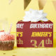 Este diseño de papel envolvente incluye un mensaje como "¡EL CUMPLEAÑOS 34 DE JENNIFER!", en el que el "34" tiene un aspecto de color falso/imitación de oro, y con el nombre y el "CUMPLEAÑOS" en un tipo de letra divertido y audaz. El nombre se puede personalizar y el fondo es de color rojo. El envolvimiento de papel como este podría ser usado cuando se le dan regalos de cumpleaños a alguien en celebración de su 34 cumpleaños. [~Z0000204]