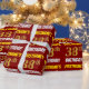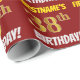 Este diseño de papel envolvente incluye un mensaje como "¡EL CUMPLEAÑOS 38 DE FIRSTNAME!", en el que el "38" tiene un aspecto de color falso/imitación dorado, y con el nombre y el "CUMPLEAÑOS" en un tipo de letra divertido y audaz. El nombre es personalizable y el fondo es rojo. El envolvimiento de papel como este podría ser usado cuando se le dan regalos de cumpleaños a alguien en celebración de sus 38 años. [~Z0000204]