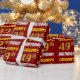 Este diseño de papel envolvente incluye un mensaje como "¡49º CUMPLEAÑOS DE GREGORY!", en el que el "49º" tiene un aspecto de color falso/imitación dorado, y con el nombre y el "CUMPLEAÑOS" en un tipo de letra divertido y audaz. El nombre es personalizable y el fondo es rojo. El papel envuelto como este podría ser usado cuando se le dan regalos de cumpleaños a alguien en celebración de su 49º cumpleaños. [~Z0000204]