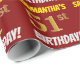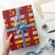 Este diseño de papel envolvente incluye un mensaje como "¡51º CUMPLEAÑOS DE SAMANTHA!", en el que el "51º" tiene un aspecto de color falso/imitación dorado, y con el nombre y el "CUMPLEAÑOS" en un tipo de letra divertido y audaz. El nombre se puede personalizar y el fondo es de color rojo. El papel envuelto como este podría ser usado cuando se le dan regalos de cumpleaños a alguien en celebración de su cincuenta primer cumpleaños. [~Z0000204]