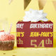 Este diseño de papel envolvente incluye un mensaje como "¡54º CUMPLEAÑOS DE JEAN-PAUL!", en el que el "54º" tiene un aspecto de color falso/imitación de color dorado, y con el nombre y el "CUMPLEAÑOS" en un tipo de letra divertido y audaz. El nombre es personalizable y el fondo es rojo. El papel envuelto como este podría ser usado cuando se le dan regalos de cumpleaños a alguien en celebración de sus cincuenta y cuatro años. [~Z0000204]