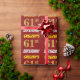 Este diseño de papel envolvente incluye un mensaje como "¡EL CUMPLEAÑOS 61 DE GREGORY!", en el que el "61" tiene un aspecto de color falso/imitación de oro, y con el nombre y el "CUMPLEAÑOS" en un tipo de letra divertido y audaz. El nombre se puede personalizar y el fondo es de color rojo. El papel envuelto como este podría ser usado cuando se le dan regalos de cumpleaños a alguien en celebración de su sesenta primer cumpleaños. [~Z0000204]