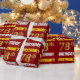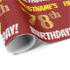 Este diseño de papel envolvente incluye un mensaje como "¡CUMPLEAÑOS 78 DE FIRSTNAME!", en el que el "78" tiene un aspecto de color falso/imitación de color dorado, y con el nombre y el "CUMPLEAÑOS" en un tipo de letra divertido y audaz. El nombre es personalizable y el fondo es rojo. El envolvimiento de papel como este podría ser usado cuando se le dan regalos de cumpleaños a alguien en celebración de sus setenta y ocho años. [~Z0000204]