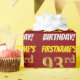 Este diseño de papel envolvente incluye un mensaje como "¡EL CUMPLEAÑOS 93 DE FIRSTNAME!", en el que el "93" tiene un aspecto de color falso/imitación de color dorado, y con el nombre y el "CUMPLEAÑOS" en un tipo de letra divertido y audaz. El nombre se puede personalizar y el fondo es de color rojo. El envolvimiento de papel como este podría ser usado cuando se le dan regalos de cumpleaños a alguien en celebración de sus noventa y tres años. [~Z0000204]