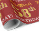 Este diseño de papel envolvente incluye un mensaje como "¡58º CUMPLEAÑOS!", y el "58º" tiene un aspecto de color falso/imitación dorado. El nombre se puede personalizar y el fondo es de color rojo. Tal vez podría ser usado cuando se envuelven regalos para el cumpleaños cincuenta y ocho de alguien. [~Z0000178]