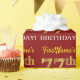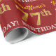 Este diseño de papel envolvente incluye un mensaje como "¡El cumpleaños número 77 de FirstName!", mientras que el "77" tiene un aspecto de color falso/imitación dorado. El nombre se puede personalizar y el fondo es de color rojo. Tal vez podría usarse cuando se envuelven regalos para el cumpleaños setenta y siete de alguien. [~Z0000178]