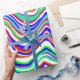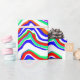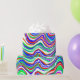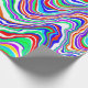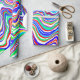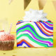 Envoltura de regalo de cumpleaños con papel de envoltura abstracto azul, verde, rojo y blanco.