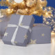 Rollo de papel envuelto de estrellas de oro y gris festivo.