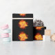 Rosa en llamas del fuego y la llama sobre fondo negro.