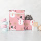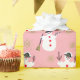 Hombres de nieve de mediados de siglo sobre fondo rosado, para los amantes de la nostalgia y el diseño retro de los años 60, mejor para el envoltorio de regalos de temporada de vacaciones