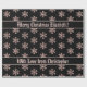 Elegante Rosa Navidades de oro Patrón de copos de nieve con texto personalizado Feliz Navidad Elizabeth con amor de Christopher en fondo negro, puedes cambiar o borrar todo el texto, Navidades Papel de envolver regalo, elegir mate o brillante