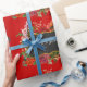 Papel De Regalo Rosa Roja con nombre personal de peonía floral vin