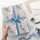 Papel de regalo simple elegante verde suave salvia y blanco con un ramo de rosas rosadas - perfecto para bodas, fiestas de soltera y cumpleaños.
